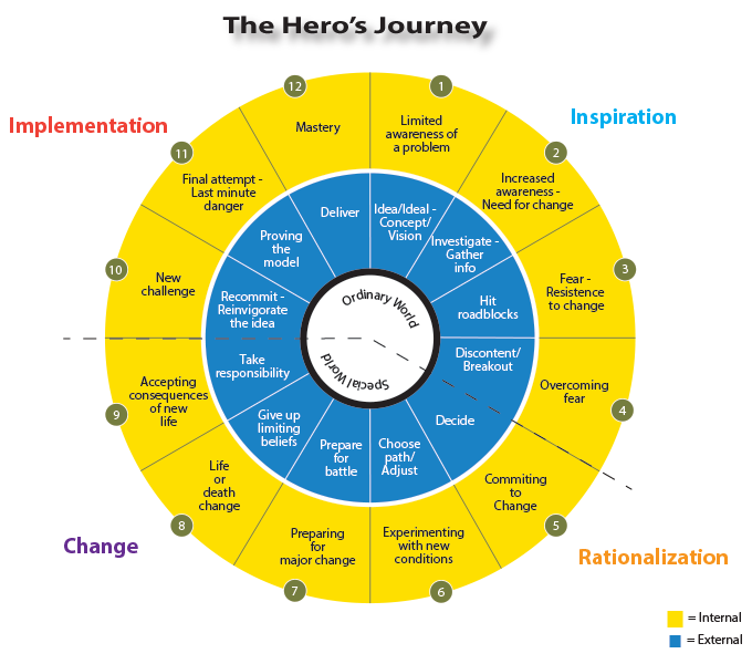 Known as the ‘Monomyth,’ Campbell’s work was originally based upon his research for his book, The Hero with a Thousand Faces, in 1949. The Hero’s Journey, initially influenced by Carl Jung’s analytical psychology, shows us how one becomes a hero by breaking the myth of his current life and venturing into the unknown.